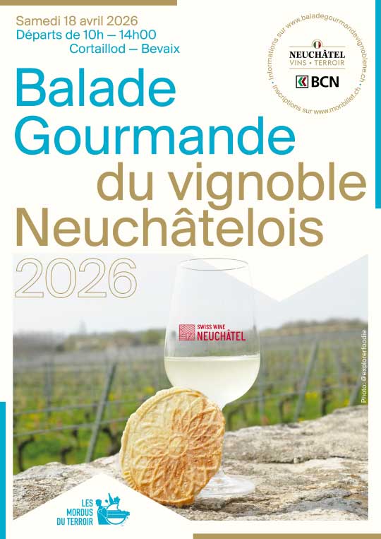 Cette marche, accessible à toutes et tous, sera ponctuée de 7 stands. Vous y découvrirez des accords mets-vins avec les produits de notre région. Le Non-filtré, le Pinot Noir ainsi que d’autres spécialités de notre canton seront présentés par les vignerons. Les vins seront accompagnés de plats* rustiques et régionaux.