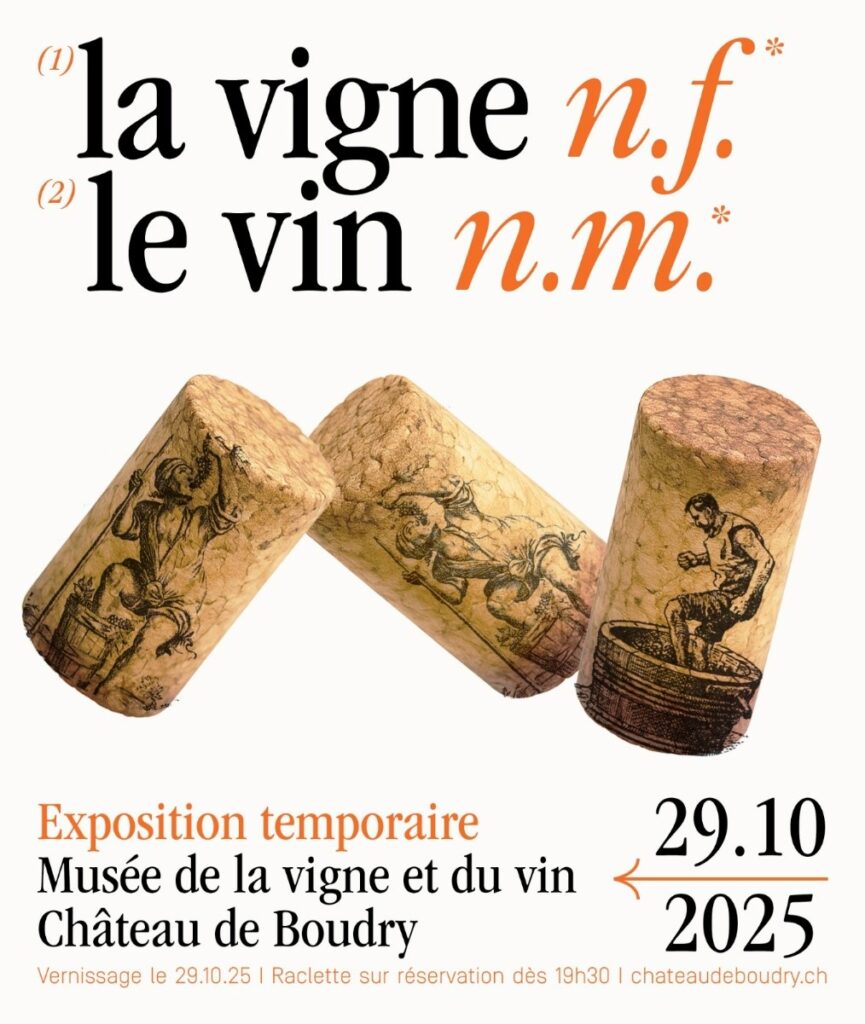 Le Mercredi 29 octobre dès 18h30 venez à l’exposition temporaire qui vous emmènera à la découverte du lien profond entre la vigne, le vin et ceux qui les façonnent. Pour prolonger la soirée, dès 19h30 une raclette gourmande sera servie sur réservation. Raclette préparée par Simon Miguet, fromager à La Côte-aux-Fées et champion du monde.