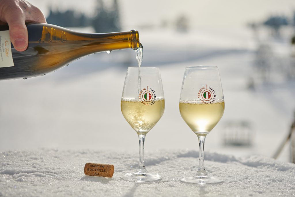 Ce vin typiquement neuchâtelois est élaboré à base de Chasselas. Sa fermentation est complètement achevée lorsqu’au début du mois de janvier, il est mis en bouteille sans filtration finale. Le Neuchâtel Ǝ̗ꓤꓕꓶIᖵ NON étant le premier vin de l’année, il représente, pour le connaisseur impatient, le reflet du millésime qui vient d’être récolté.